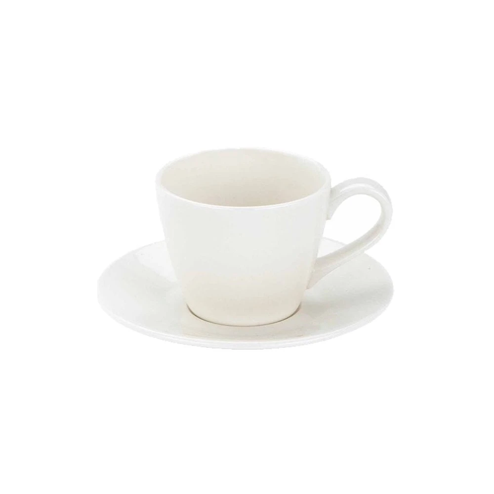 A classic white aesthetic allows these cups and saucers to fit seamlessly with almost any existing tableware setting.