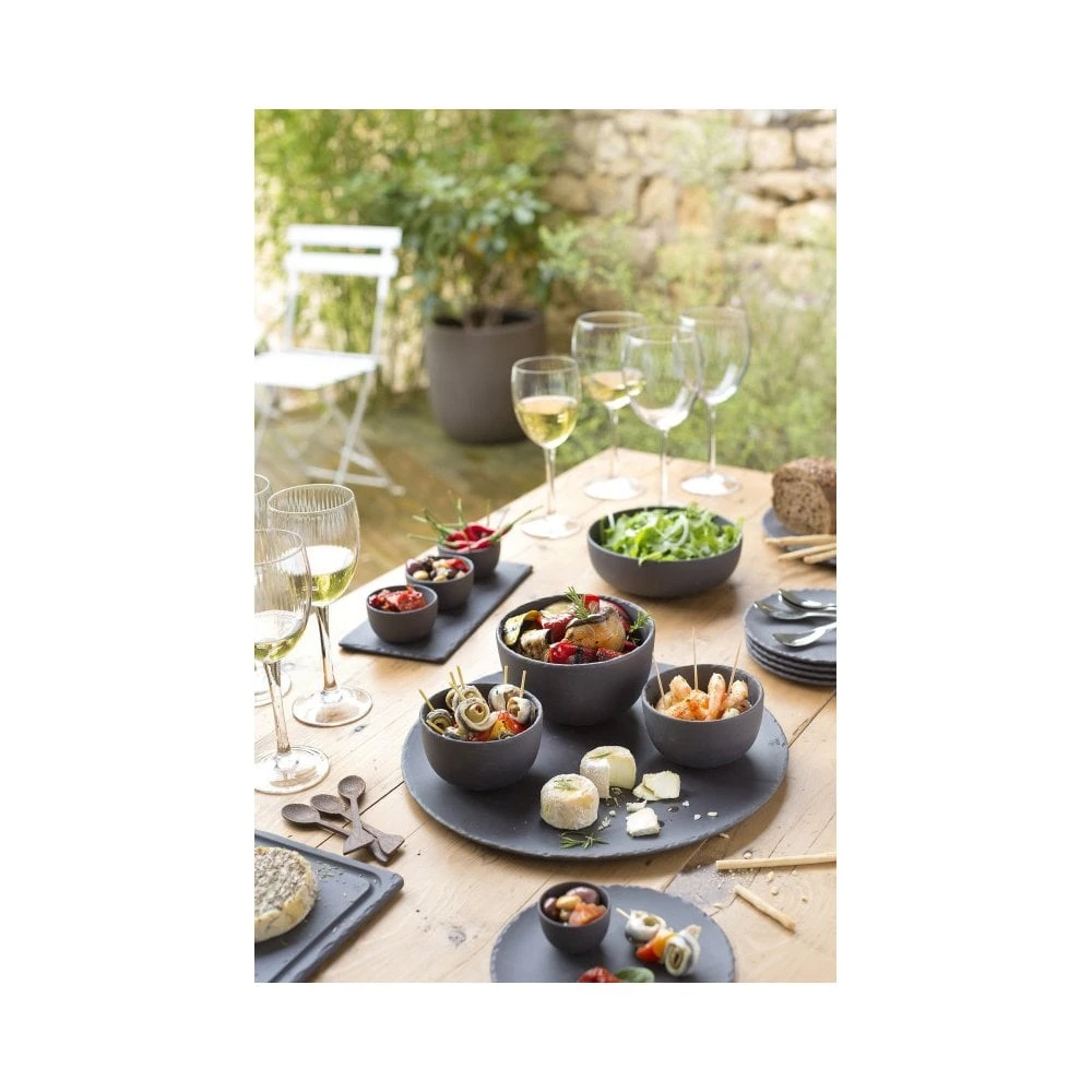 100% food-safe, Basalt is safer than natural slate because it does not scratch or chip. This collection will allow you to serve your hors d’oeuvres, appetizers, entrees, cheeses and desserts without any risks, all the while retaining the noble and natural look of slate. Unlike natural slate Basalt does not scratch and does not crumble. Nonporous, it does not absorb oil or bacteria and is therefore easy to clean.